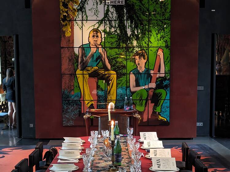 Coup de chance, vous allez avoir droit à une séance de rattrapage puisque l’EN renaît de ses cendres le temps d’un pop-up parisien dans l’une des adresses les plus dingues de la ville. Jusqu’au 11 avril, Reika Alexander s’installe au premier étage du Serpent à Plume pour y servir cette cuisine japonaise modernisée qui a fait son succès. S’attabler ici constitue déjà un événement en soi. Voilà une salle à manger baroque unique à Paris : ici une commode Art nouveau, là un immense tableau de Gilbert & George, des faïences de Delphes et une tapisserie Renaissance (avec vue sur la place des Vosges). Il sera possible de goûter les spécialités qui ont fait la légende de l’izakaya préféré de Karl Lagerfeld : soyeux tofu maison, sushis de légumes fermentés… Comptez entre 69 et 98 € l’expérience multisensorielle.