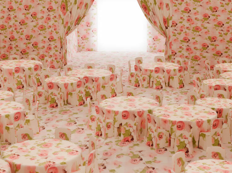 Toujours aussi doué pour dégotter des lieux inédits où poser ses événements, le studio de création culinaire et artistique We Are Ona, prix spécial des derniers Time Out Food & Drink Awards, a jeté son dévolu sur un ancien carrossier au cœur du 7e (à deux bielles des Invalides) pour sa prochaine série de dîners à l’occasion d’Art Basel Paris. Mais évidemment, vous n’allez pas vous attabler entre deux bidons d’huile de vidange. L’espace a été entièrement transformé par India Mahdavi, architecte et scénographe parisienne : un textile unique, inspiré de la rose d’Ispahan, recouvre l’ensemble des éléments (nappes, serviettes, tabliers, assises).