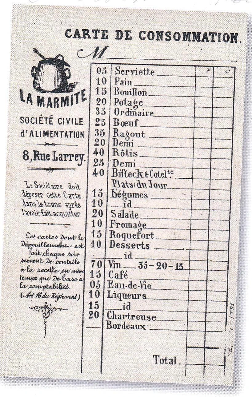 L’armistice du 28 janvier 1871, bien qu’elle relâche la pression alimentaire, est insupportable aux Parisiens qui se soulèvent pour mener une expérience libertaire qui durera 73 jours : la Commune. Sa grande ambition ? « Changer la vie » selon le mot de Rimbaud, la changer dans tous ses aspects, y compris alimentaire, grâce à une cantine ouvrière : La Marmite. Fondée en 1868 par les grand(e)s communard(e)s Nathalie Lemel et Eugène Varlin, elle œuvre pour « fournir au prix de revient une nourriture saine et abondante à consommer sur place ou à emporter ». Les Marmites essaiment rapidement dans Paris. Au menu, de bonnes gamelles prolétaires : potage, ragout, bifteck ou roquefort à pousser au picrate. « Des repas modestes, mais bien accommodés » où « la gaîté régnait autour des tables » d’après le poète-révolutionnaire Charles Keller qui les fréquente. On y cause politique aussi et on entonne des chants rouges avec le coup de rouge… Les Marmites nourricières mourront avec Eugène Varlin, lynché et exécuté en 1871 pour avoir défendu la dernière barricade de la Commune rue de la Fontaine-au-Roi (11e). Démon pour les uns, (mar)mythe pour les autres.