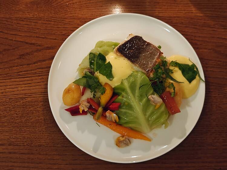 Patine, c’est l’ancien Café Mirabelle où s’affairait Marion Goettlé, repris par Julien Chevallier (ex Parcelles) en cuisine et Emma Rajaud, en salle. Le duo l’a transformé en un bistrot épuré – briques à vif, opaline et chaises Baumann – bercé par du Nougaro qui s’échappe d’enceintes vintage. Faisant mentir son nom, cette jeune adresse (l’ouverture date de fin décembre) ne patine pas du tout, au contraire : la trajectoire bistrotière s’avère carrément maîtrisée par le chef, qui nous conduit, bras à la portière, vers ses assiettes très personnelles, redonnant un peu de jus à une bistronomie parfois galvaudée.